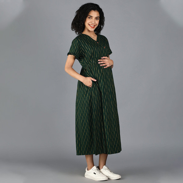 Green abstract print empire dress