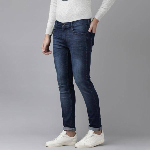 Dark shade, light fade blue jeans Slim fit, low-rise Brand Fit: Tapered Vapour Clean look Stretchable 5 pocket Length: regular Size & Fit Brand Fit: Tapered Vapour Fit: Slim Fit Stretchable The model (height 6') is wearing a size 32 Material & Care 79% Cotton, 20% Polyester & 1% Elastane Machine Wash