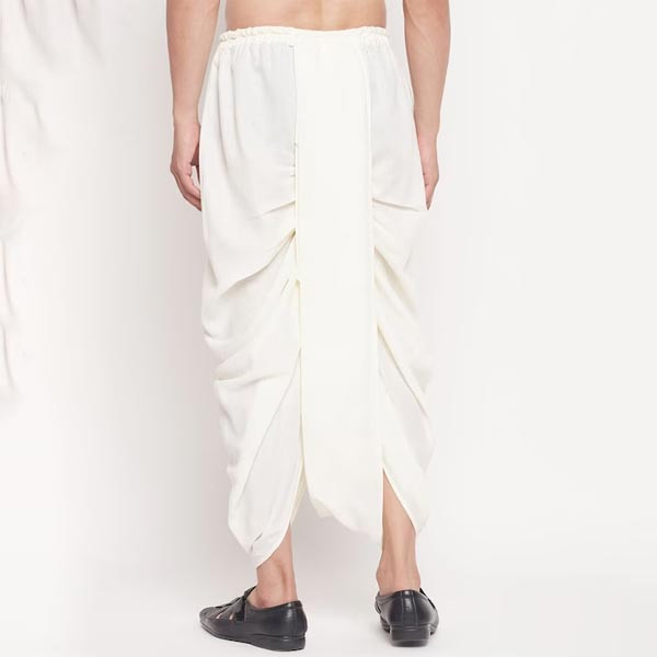 Cream-coloured solid mid-rise dhoti with pleats, has a waistband with a drawstring fastening Size & Fit The model (height 6') is wearing S Material & Care Cotton Blend Dry Clean preferably or cold light wash