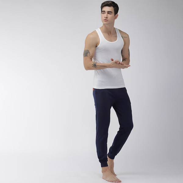 Pack of 2 White solid innerwear vests Each has a scoop neck, sleeveless, engineered with Coolin DNA Technology, anti-microbial protection & smart skin technology. Size & Fit The model (height 6') is wearing a size M Material & Care 100% cotton Machine Wash