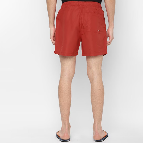 Red solid swim shorts, has a drawstring closure and 3 pockets Size & Fit The model (height 6.2') is wearing size M Material & Care 100% polyester Machine wash