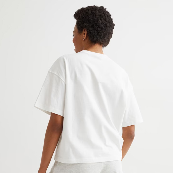 Boxy T-shirt in soft cotton jersey with a round, rib-trimmed neckline, dropped shoulders and wide sleeves that finish just above the elbow.