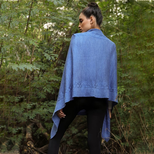 Self design asymmetric closure cape jacket collarless ,long quater sleeves, straight hemline
