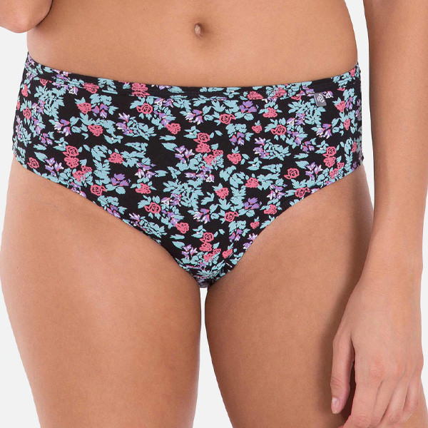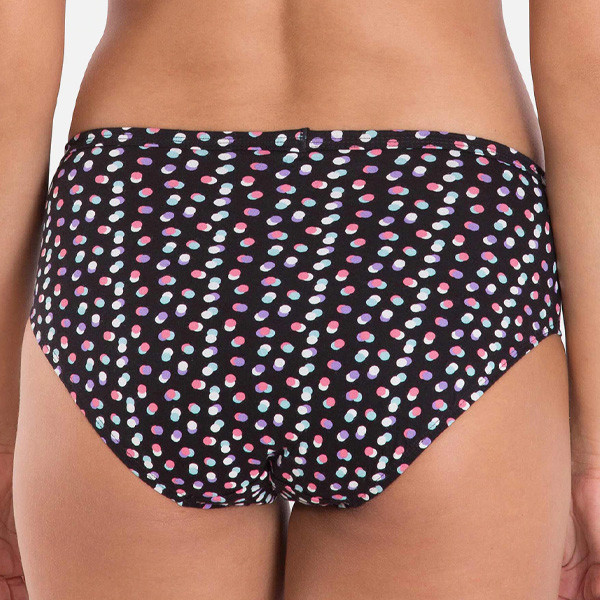 A pack of three hipster briefs in assorted colours and prints, each has an elasticated waistband, printed branding on the front, double-layered gusset, elasticated leg openings