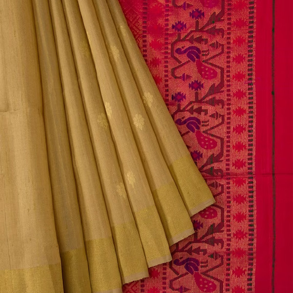 Beige and mustard saree