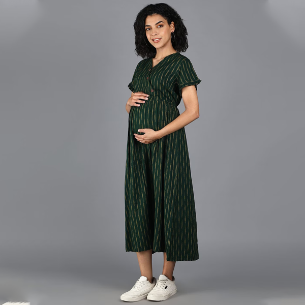 Green abstract print empire dress