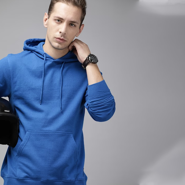 Blue solid sweatshirt, has a hood, one pockets, long sleeves, straight hemSize & FitThe model (height 6') is wearing a size MMaterial & CareMaterial: 60% Cotton and 40% PolyesterMachine Wash