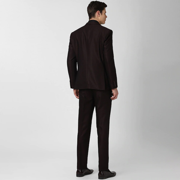 Brown slim-fit blazer, has a notched lapel, single-breasted with button closure, long sleeves, one welt pocket, two flap pockets and double vented back hem