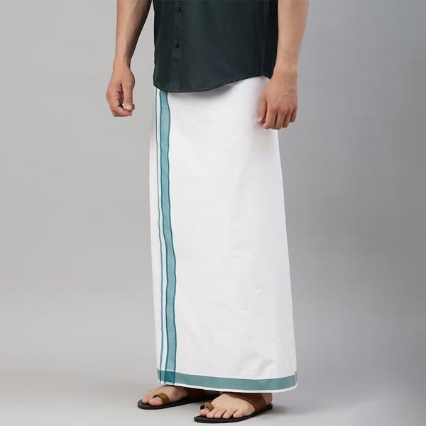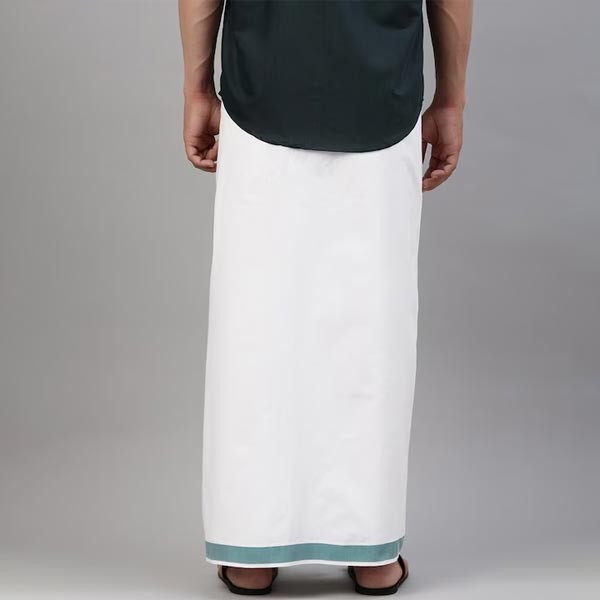 Men White Solid Cotton Dhoti has a green border Material & Care 100% Cotton Machine wash