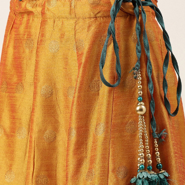 Teal and mustard woven design lehenga choli with dupatta, zari