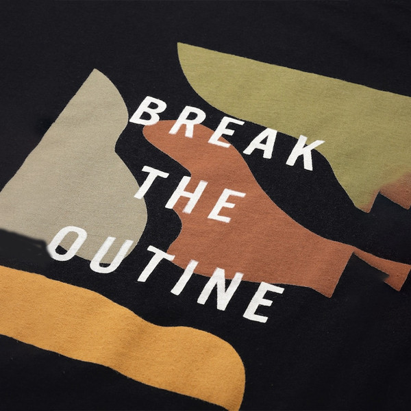 Black and orange printed T-shirt, has a round neck, and short sleeves