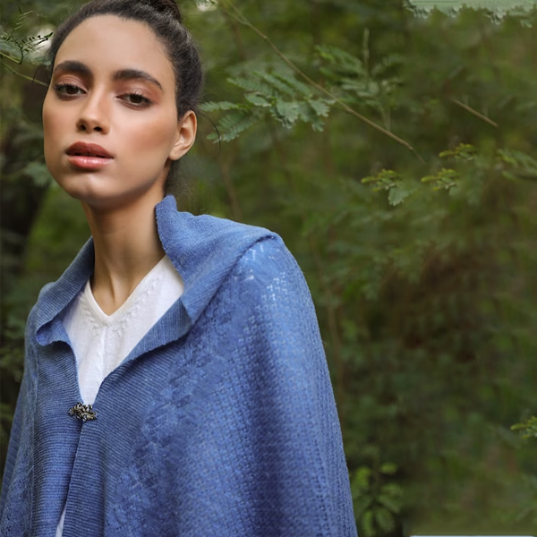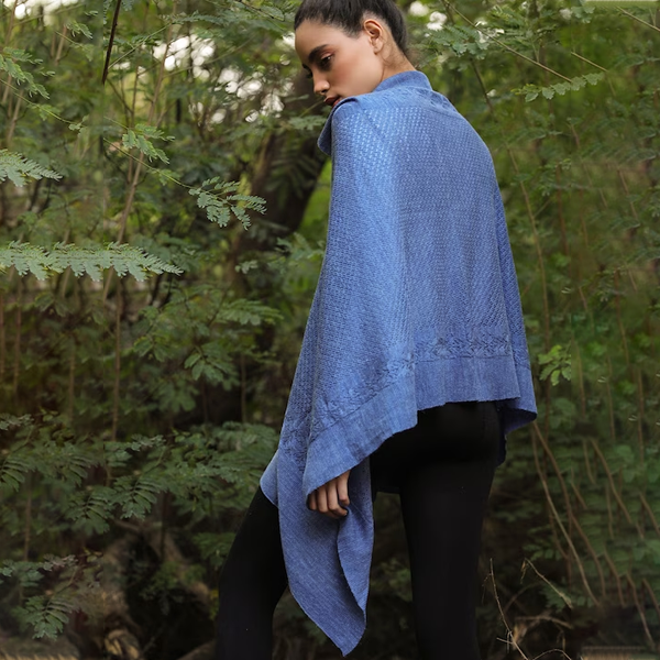 Self design asymmetric closure cape jacket collarless ,long quater sleeves, straight hemline