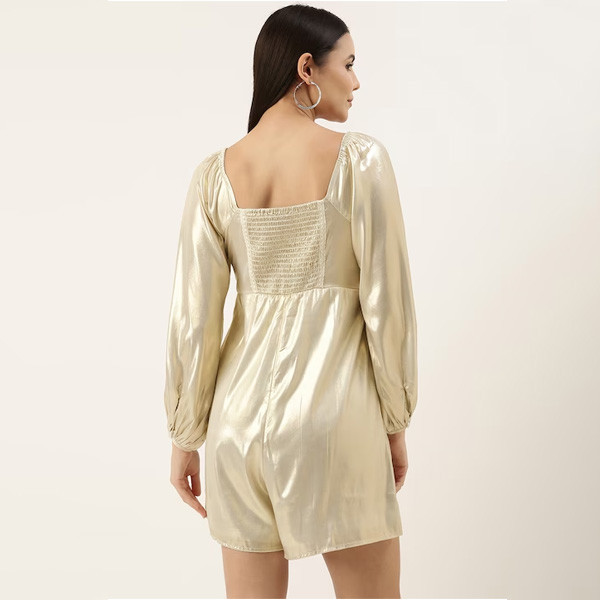 Beige solid basic jumpsuit ,has a square neck, long sleeves, pockets