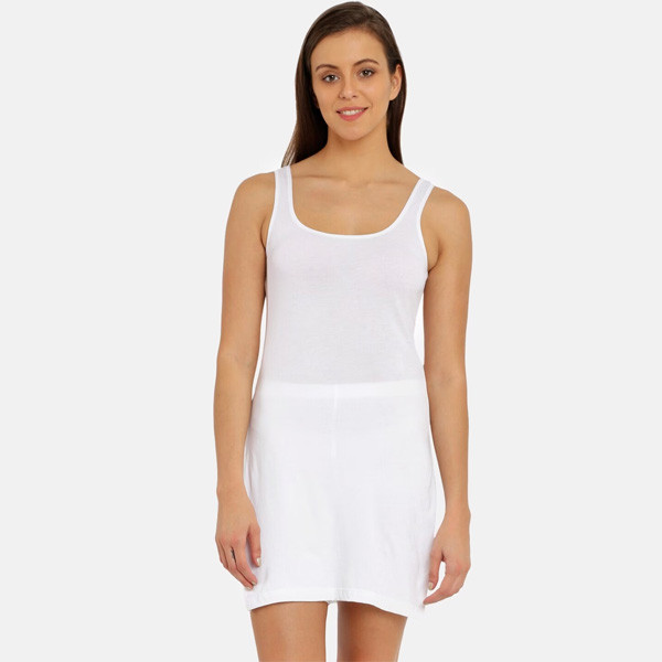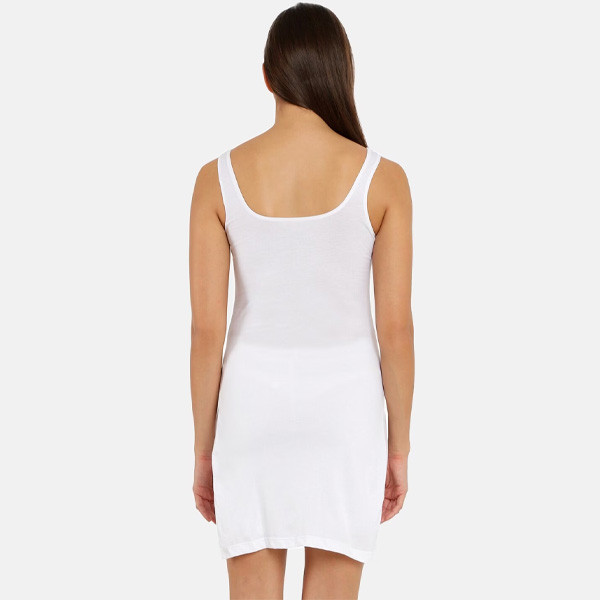 White solid knitted long camisole, has a round neck, sleevelessMaterial & Care100% cottonMachine wash